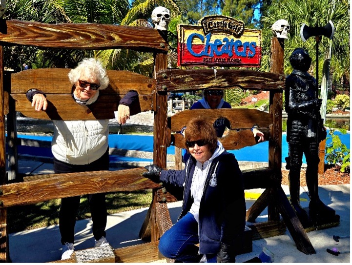 The GWC Gals on the GO hosted the annual Mini-Golf Outing at Castle Golf located on Gladiolus Dr. This miniature golf course has lavish landscaping of tropical plants, waterfalls, and has a medieval – theme, with mystical creatures like dragons and knights.