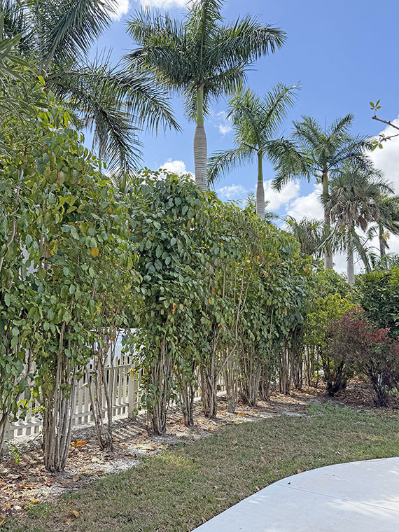 As early as 1908, it was documented that Thomas Edison procured the Geranium Aralia, also referred to as Wild Coffee (not related to any genus of coffee plants) from the Reasoner Bros. nursery for analysis of its latex content. Today, this plant goes by the binomial name of Polyscias guilfoylei where the genus name means “many shaded.” This is a great border type plant, native to Africa, South and Central America, and Asia. Known as a “humidity hound,” it thrives in Southwest Florida summers and will shed many of its leaves when there is an insufficient humidity level. A varietal named P. guilfoylei ‘Victoriae’ won the Royal Horticultural Society’s Award of Merit for its strong variegation and ease of growth. Sometimes referred to as the Victoria Tree, it grows to 24 feet.